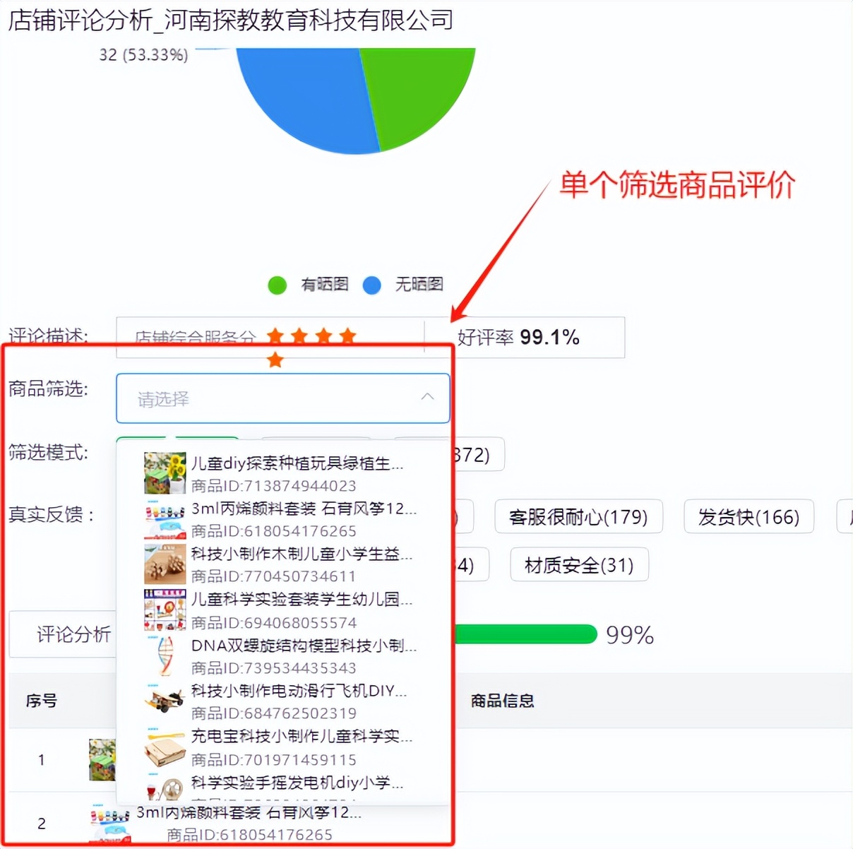 ●通过大数据汇总整理饼状图,对所有的评论进行饼状图归类,包括带图分析、顾客类型分析、购买用户星级。所有评价出现高频关键词汇总展现,这些评价往往能反映出产品的真实质量和服务水平,有助于你了解供应商的产品和服务情况。