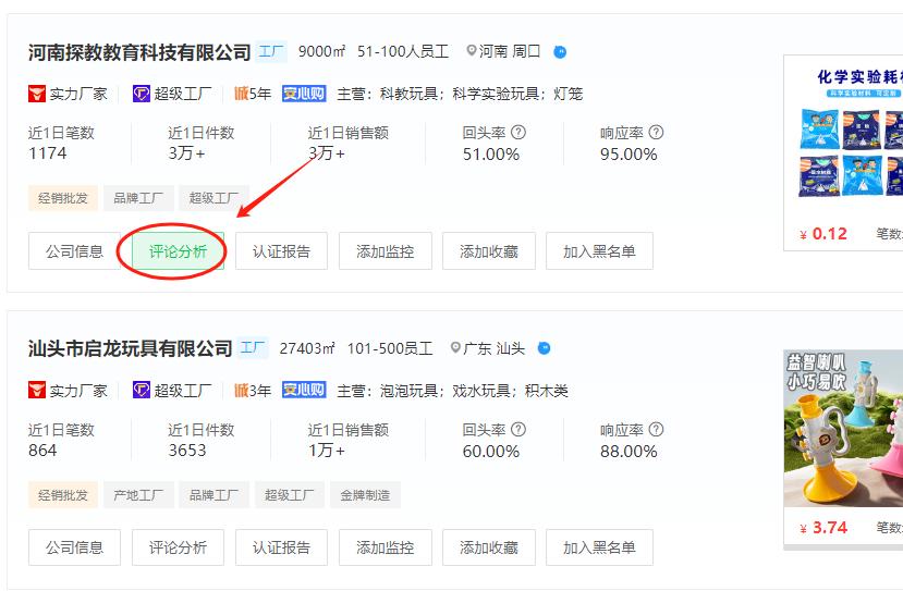 在1688平台上,通常我们只能通过查看其他买家对产品的评价以此来判断供应商的产品。那么如何如何通过采购商或者更加全面的了解厂家呢?通过店雷达1688店铺榜的“评论分析”功能就能实现。