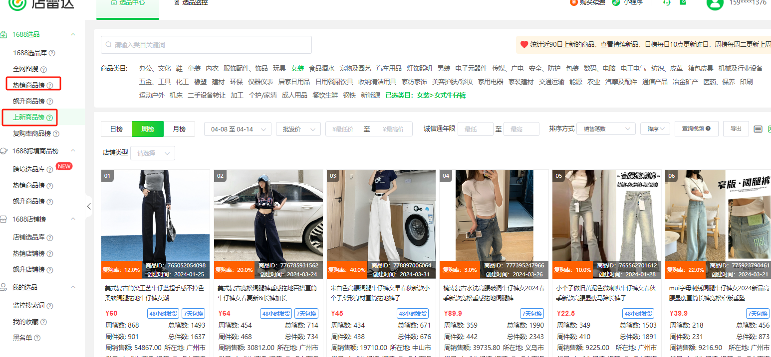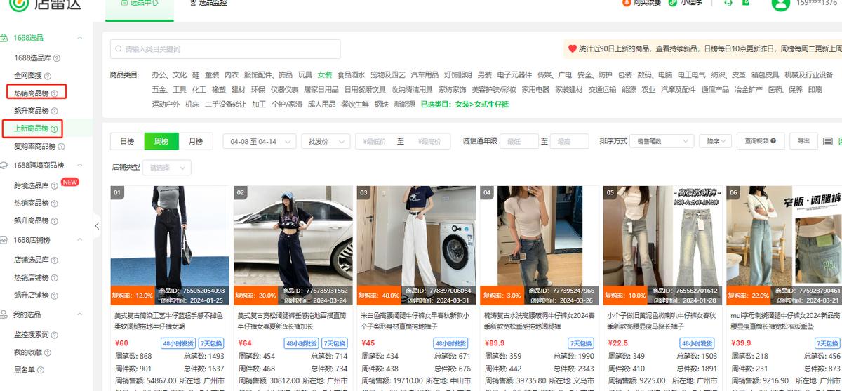 我是做服装的,对款式以及市场更新速度要求比较高,我比较常看的就是热销品和上新品。