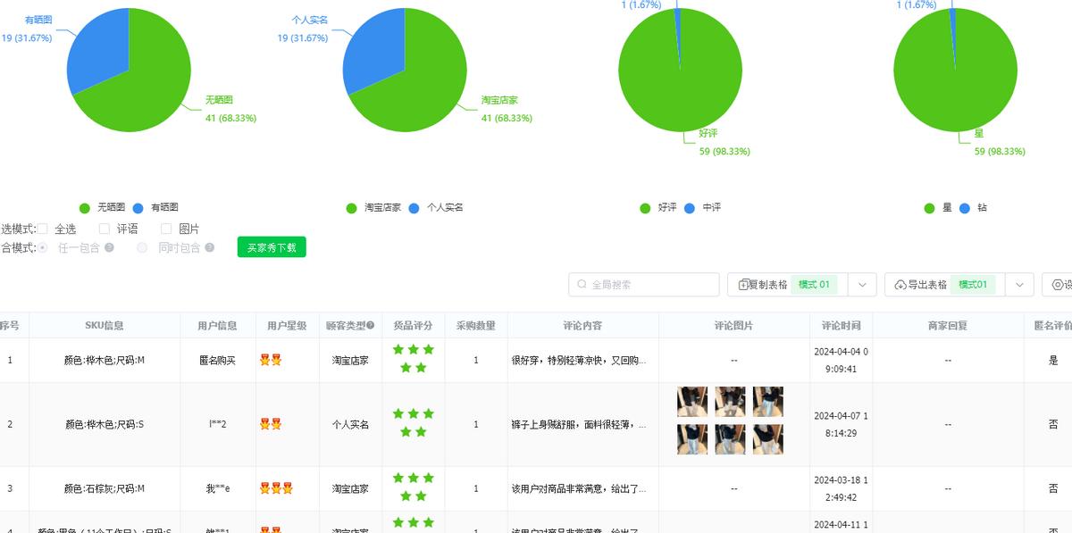 SKU评分分析对我这样做服装的商家来说,是非常有用的功能,从评论中也能提取到哪个具体的颜色、尺码讨论的最多,我会相应进行补货,避免出现说缺货的状态,影响消费者的体验。