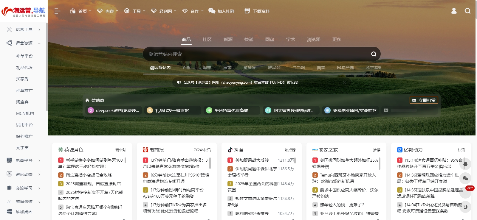 整合了大量电商资讯网站,提供了丰富的电商行业新闻、知识、趋势分析、实战经验等内容,帮助运营人员及时了解行业动态,掌握最新的运营策略和技巧。